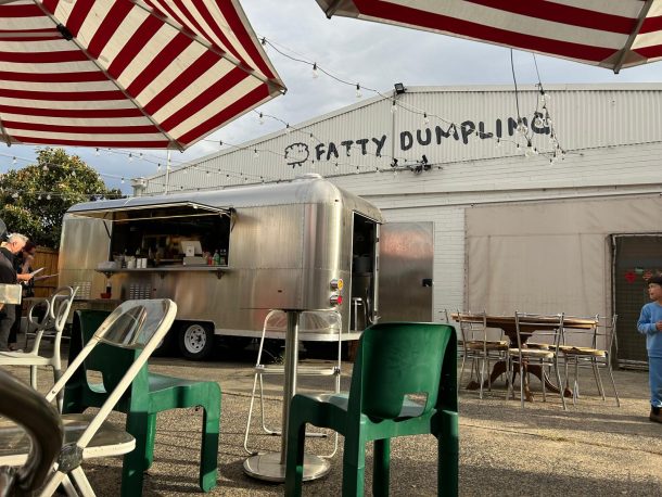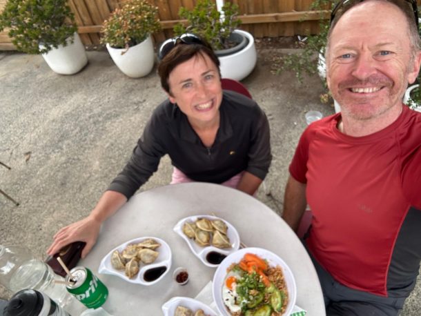 We were back at our digs to get cleaned up and chill out before heading out for something to eat. We generally cater for ourselves when we are on our bikes as eating out all the time just gets far too expensive, but we also make sure that we go out once in a while. We’d got a recommendation from our AirBnB hosts (Kriss and Robin) about a Chinese dumpling truck parked behind a warehouse in town – very salubrious! Fatty Dumplings, for that was its name, had just had an amazing review in the Sydney Herald and was fast becoming famous, so we feel privileged that we got to sample the food before it gets too popular! We had a mix of dumplings and a rice dish, all of which were interesting, but to be honest, not amazing in our unprofessional view. However, the whole atmosphere around the yard was lovely, with kids playing and a general flow of people coming and going – great people watching!