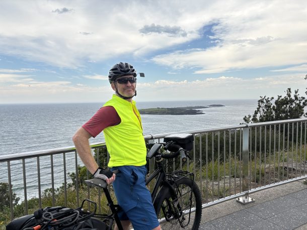 Back on the road and we made it to Port Kembla, which we have cycled to before on a day out of Austinmer (aka Austi), so we knew that this part of the journey would be next to busy roads. So, nothing to see here! Or so we thought – we’d miss some of the costal path on our last trip to Port Kembla and this time we did the whole lot which meant gurning our way up to Port Kembla beach, where we had an apple, and then further up the very steep Lookout Hill 60! Very tough and not much of a reward at the top!